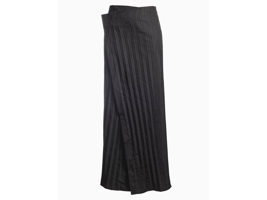 Sukně je vyrobena z ručně plisovaného ušlechtilého polyamidu s pamětí, který spojuje technické vlastnosti s vizuální jemností. Memory materiál si dokáže uchovat tvar, což umožňuje plisování zůstat výrazné a dlouhodobě stabilní.